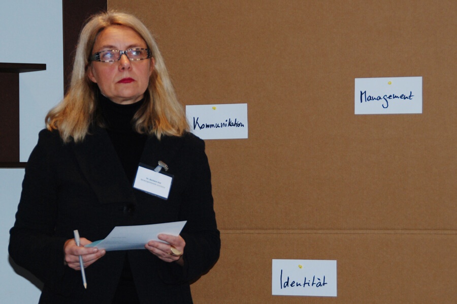 Die Herausforderung, aus einer heterogenen Gruppe von Personen und Institutionen aus den verschiedensten Disziplinen und an zahlreichen Standorten einen gemeinschaftlich handelnden Verbund zu schaffen, ist groß. Dies gilt umso mehr, wenn die Zusammenarbeit primär durch eine Förderausschreibung initiiert wurde. In der Konzeption des Workshops, an dem 25 Forscher, Verbundkoordinatoren und Kommunikationsverantwortliche teilnahmen, hatten sich die Themen Management, Identität und Kommunikation als die Kernbereiche herauskristallisiert, an denen sich die Vorträge des ersten Teils der Veranstaltung orientierten. Anschließend prüften die Teilnehmer in einer Gruppenarbeit, wo die Identifikation und die interne Kommunikation in ihren Verbünden bereits gut funktioniert, überlegten, welche Anregungen sie aus den Vorträgen nutzen wollen und formulierten konkrete Ideen zur Veränderung der internen Kommunikation in ihrem Verbund.