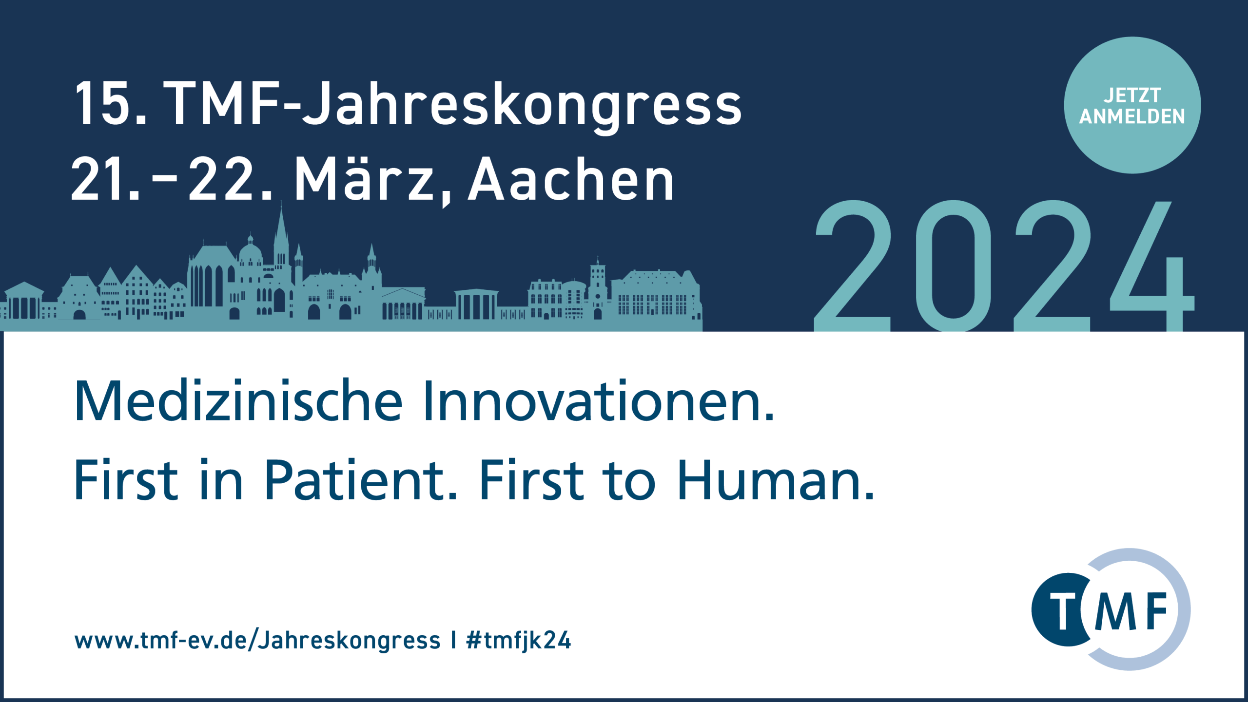 Wie schaffen wir es, dass medizinische Innovationen aus der Forschung möglichst schnell in die medizinische Versorgung und damit zu den Patientinnen und Patienten gelangen? Dieser Frage widmet sich der 15. TMF-Jahreskongress, welcher vom 21.-22. März 2024 in Aachen stattfindet. Unter dem Motto „Medizinische Innovationen. First in Patient. First to Human.“ diskutieren wir die Herausforderungen und Lösungen der translationalen Forschung.